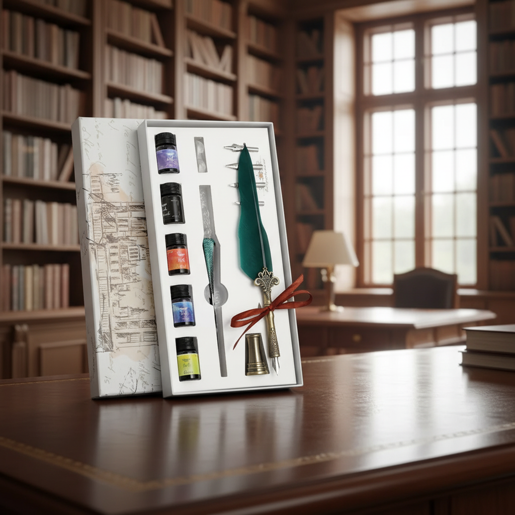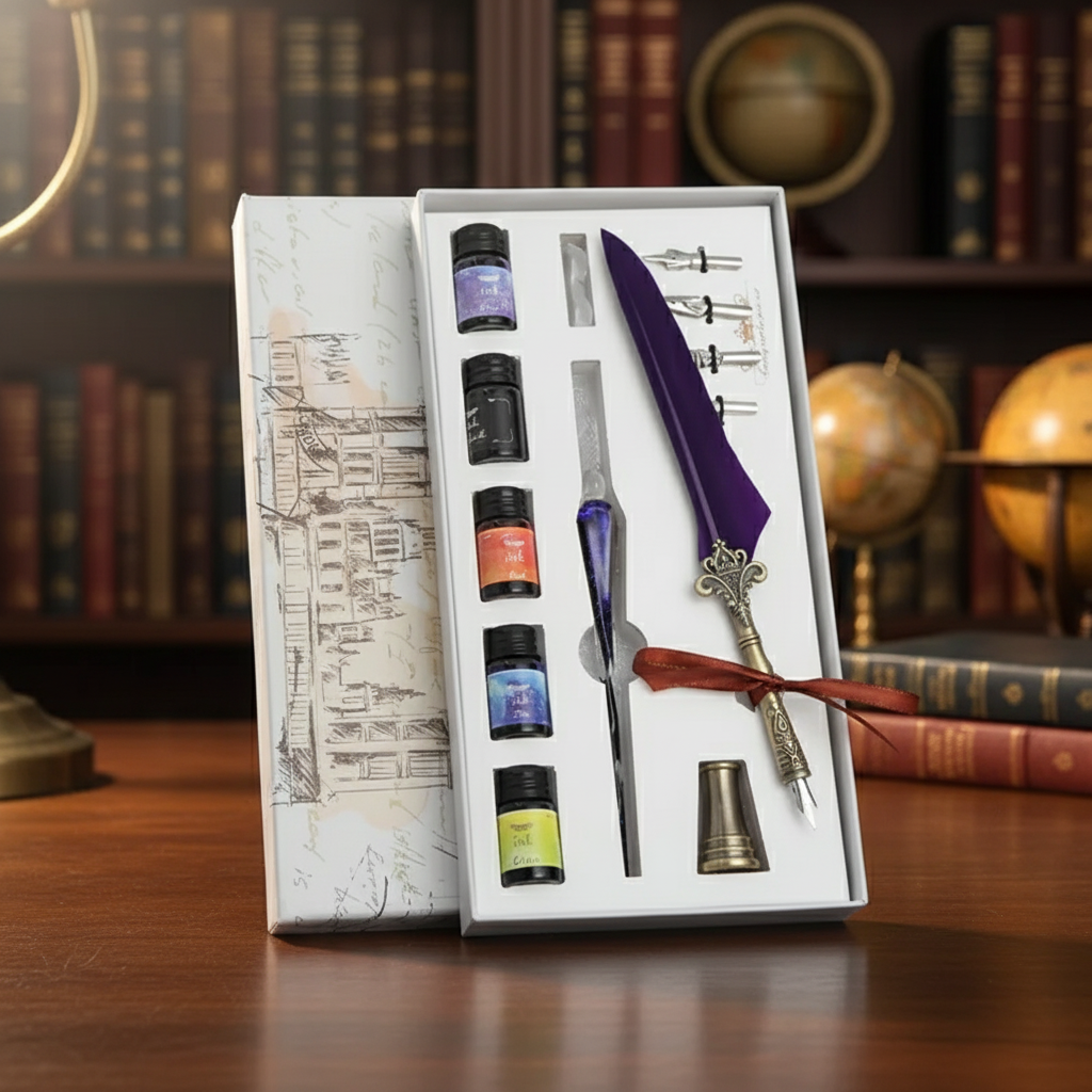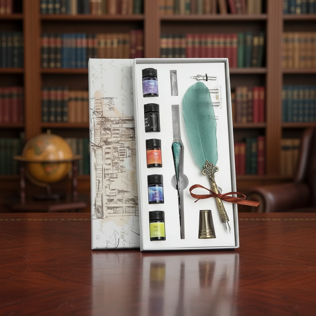 The Feather Pen: The beautifully designed feather pen (ranging from 23–25cm) adds a touch of classic, vintage sophistication to your desk.