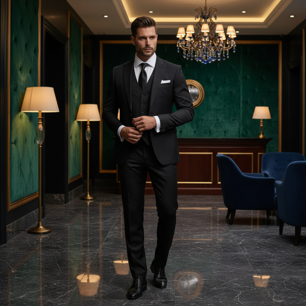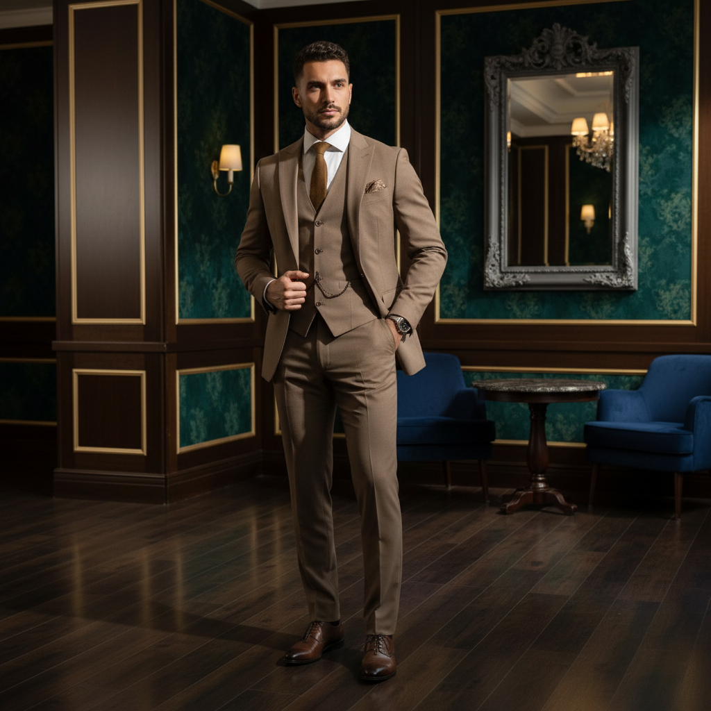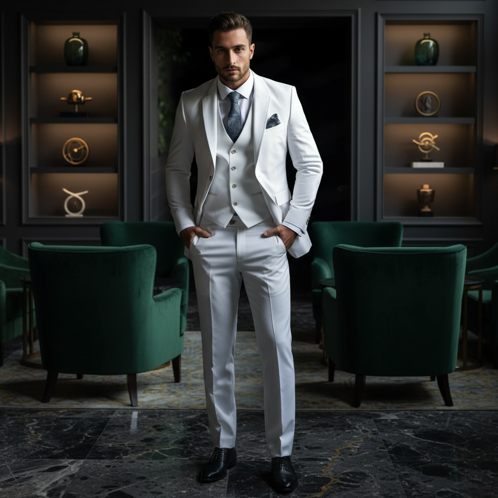 Three-Piece Set: Includes fully matched Coat, Vest, and Trousers for immediate polish.