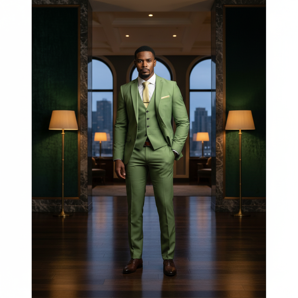 Upgrade your formal repertoire with this meticulously tailored Men's 3-Piece Slim Fit Suit Set. This collection—featuring a jacket, vest, and trousers—is designed not just for a moment, but for a new era of professional confidence.