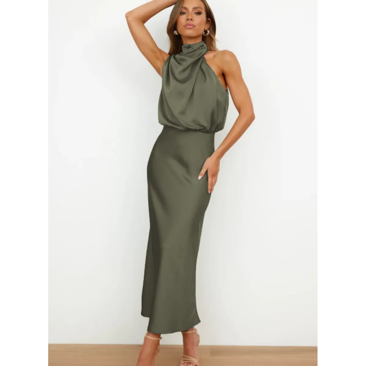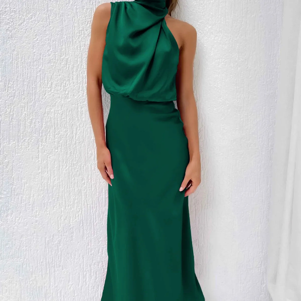 This dress is built to be a statement. The material is crafted from high-quality polyester chosen for its beautiful drape and fluid movement. The sleek silhouette is flattering and sophisticated, embodying the modern confidence required for formal events and galas.