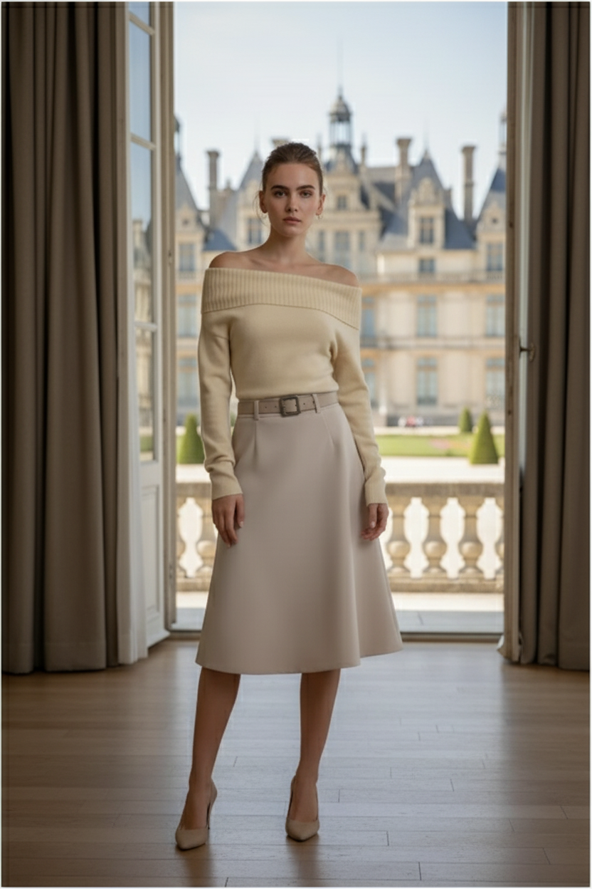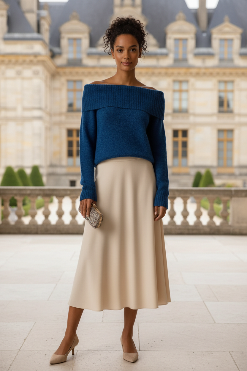 • Off-Shoulder Neckline: Subtly exposes the collarbone and shoulders, adding the confident femininity perfect for an evening cocktail.