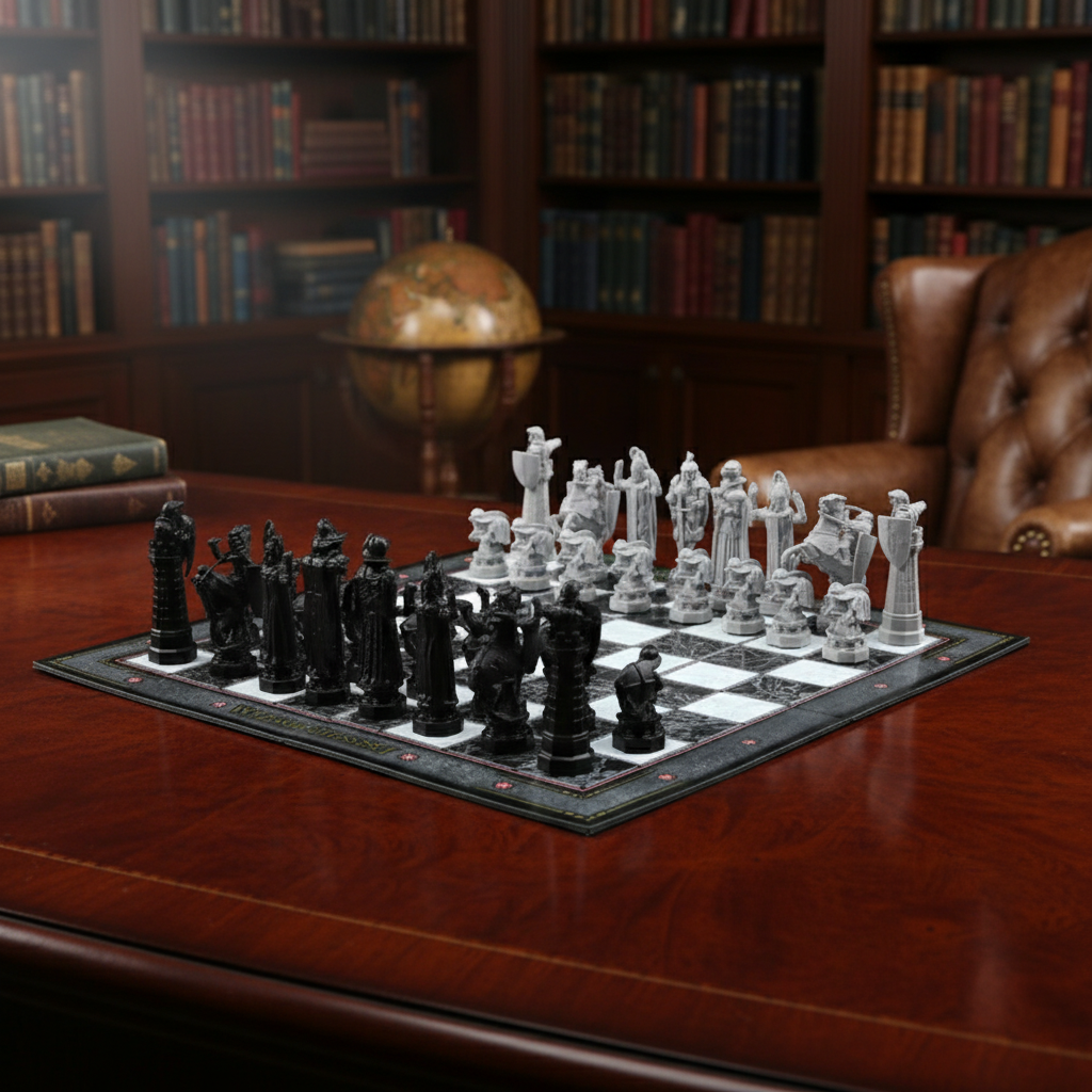 Discover the magic of the wizarding world with our exclusive Hogwarts Ultimate Challenge Wizard Chess Set. This stunning chessboard is not just a game; it's a meticulously crafted piece of Harry Potter memorabilia that brings the enchanting, strategic battles of the films directly to your home.