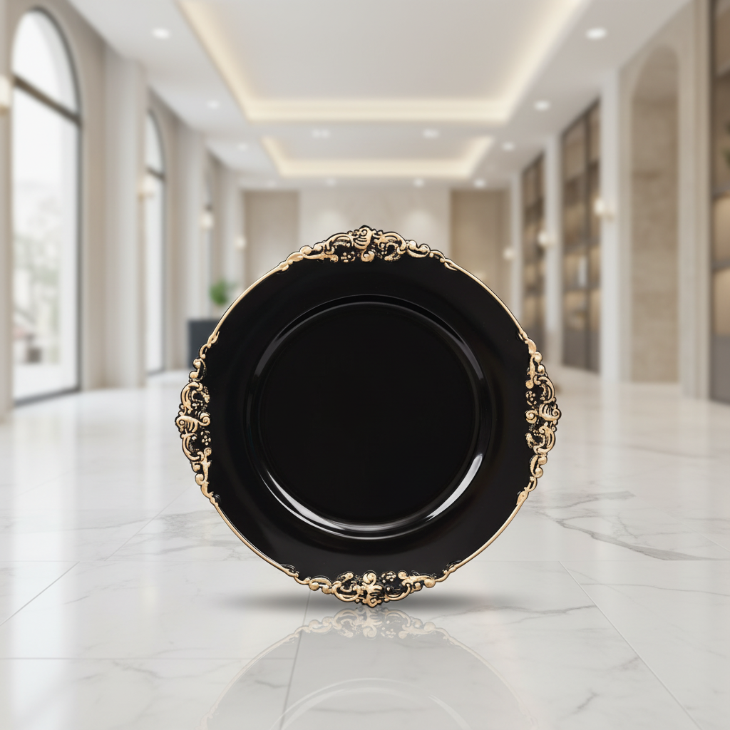 Crafted from high-quality, sturdy plastic, these charger plates offer the look and feel of real metal while being lightweight and durable.