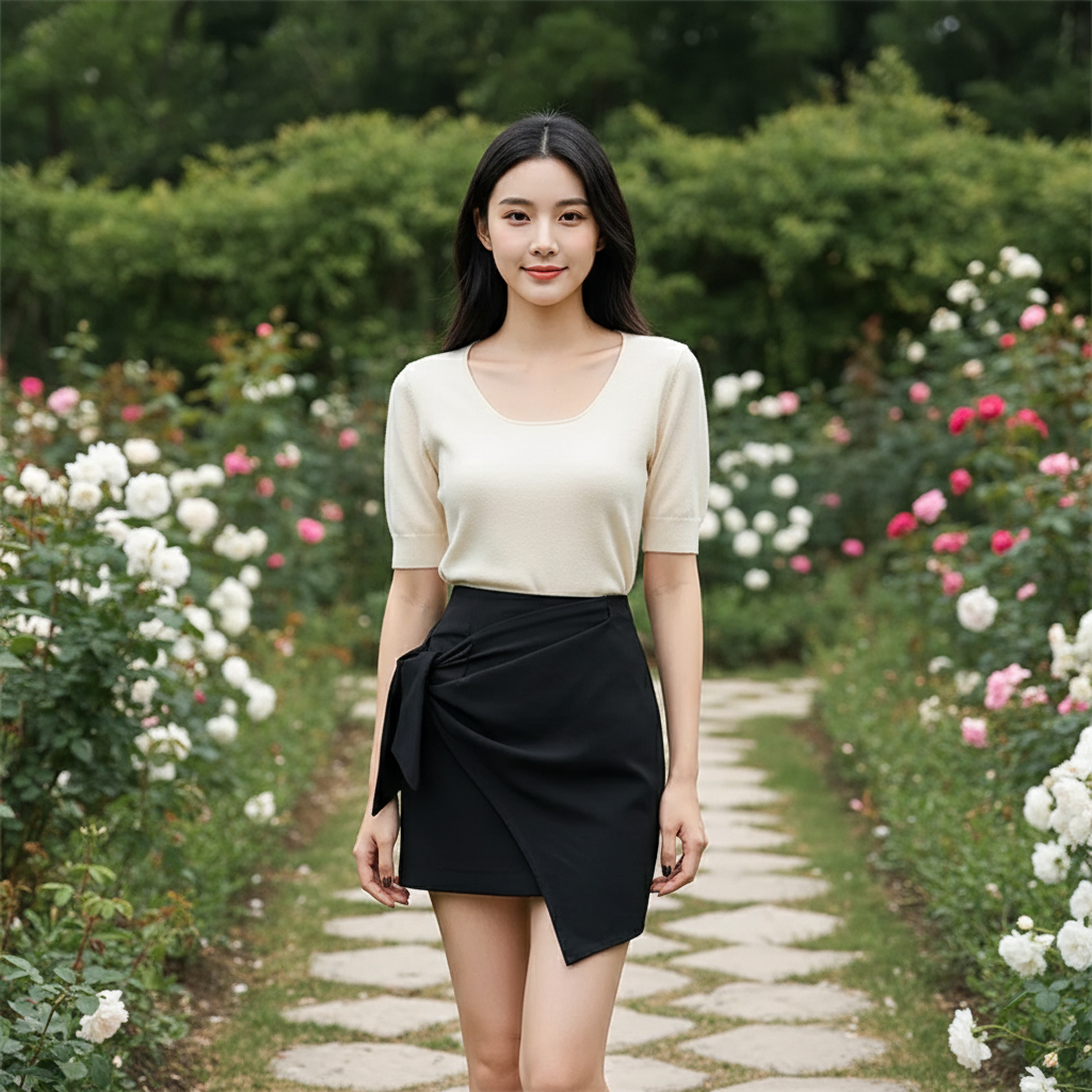 The plain pattern offers unparalleled versatility, allowing you to effortlessly pair this skirt with your favorite tops, from a sophisticated blouse to a simple bodysuit, for a chic look every time. The irregular, short hemline adds a contemporary, fashionable twist to the classic midi length.