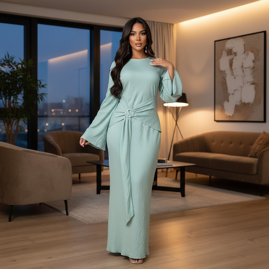 Crafted from high-quality polyester, the fabric is designed for durability and a beautiful drape, ensuring ultimate comfort for all-day wear. The structure is meticulously constructed to accentuate your figure, providing a flattering fit that moves with grace.