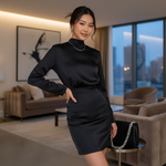 Available in a classic black color, this dress is the definition of versatility. Its opulent satin finish ensures you look instantly polished and confident, making it suitable for any occasion: whether you're dressing up for a formal event or simply heading out for a sophisticated casual day look.