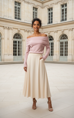 Off-Shoulder Neckline: Subtly exposes the collarbone and shoulders, adding the confident femininity perfect for an evening cocktail.