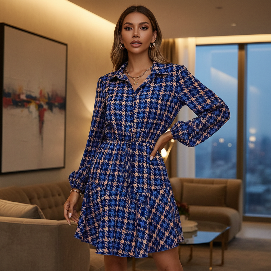 Step into elegance with our stunning Long-Sleeved Plaid Dresses. Designed for the modern woman, this dress features a chic silhouette and a timeless pattern that ensures effortless style across seasons.